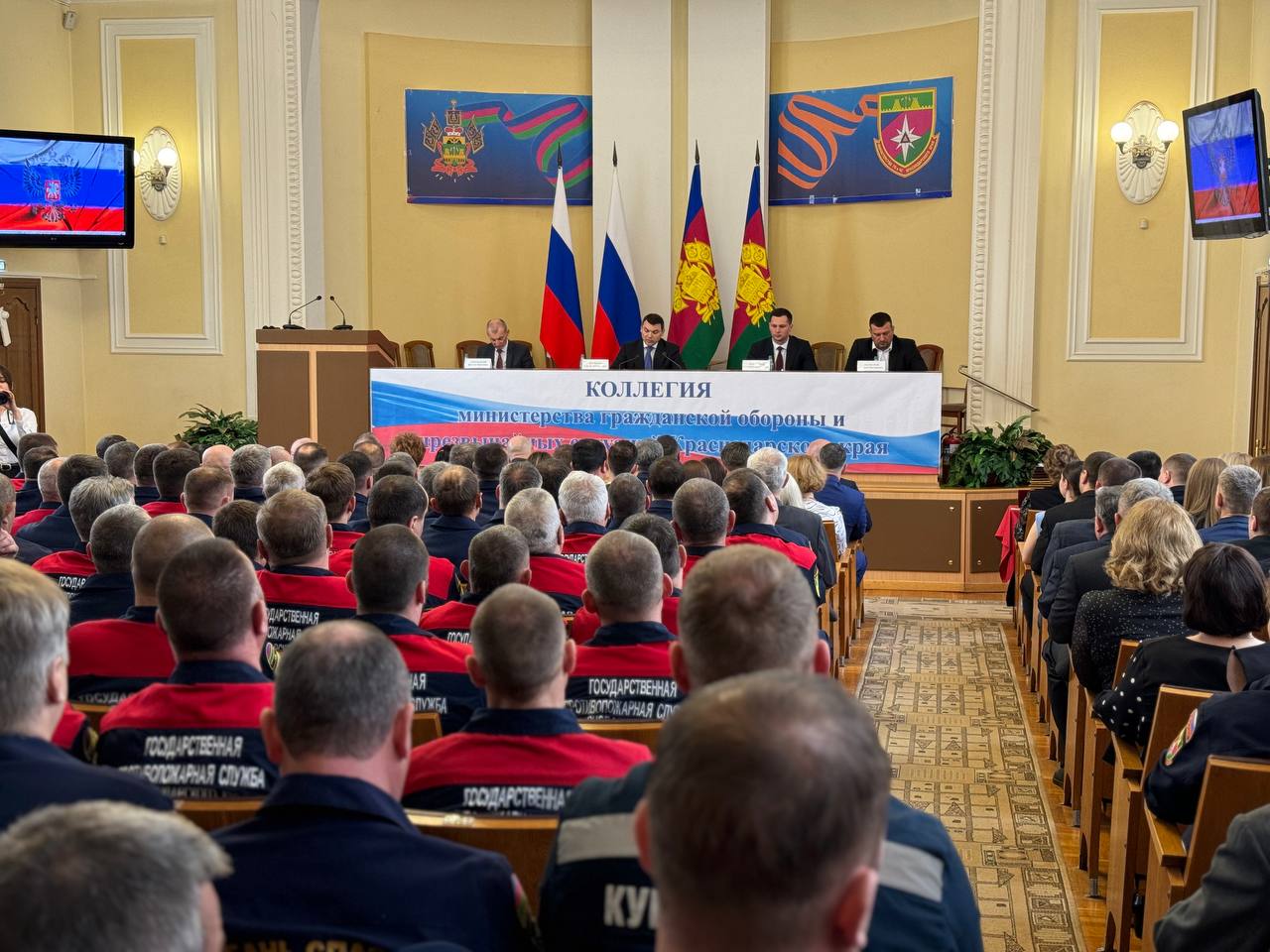 Под председательством министра ГО и ЧС Краснодарского края Сергея Штрикова состоялась коллегия, где были подведены итоги деятельности ведомства за прошедший год. В мероприятии приняли участие заместитель министра природных ресурсов края Андрей Колосков, личный состав министерства и подведомственных учреждений, а также начальники аварийно-спасательных отрядов и пожарных частей.